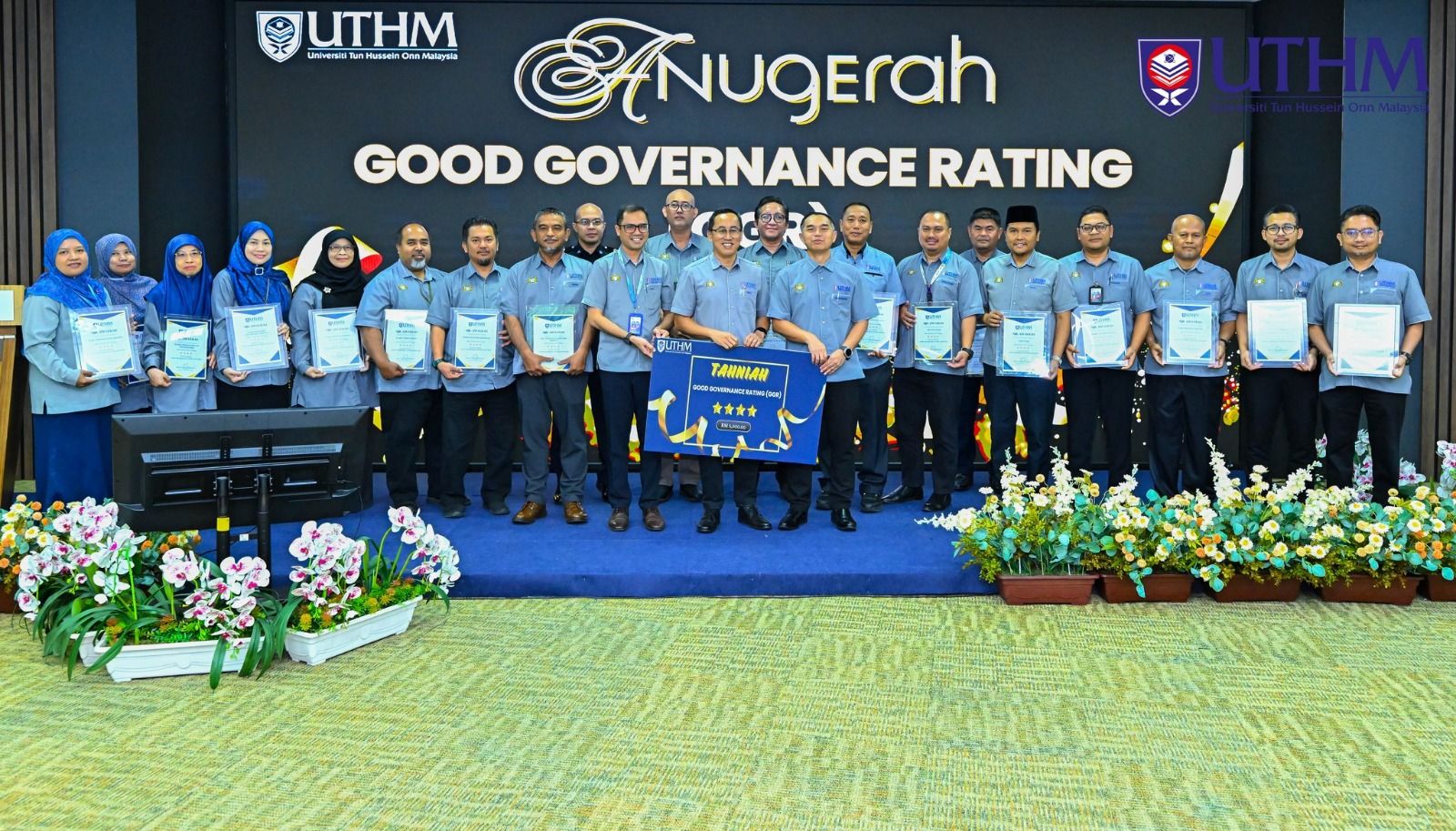06 Mac 2026 I Pejabat Kelestarian Kewangan (PKKew) telah menerima pengiktirafan Anugerah Good Governance Rating (GGR) 4 Bintang bagi tahun 2025 dan anugerah telah disampaikan oleh Naib Canselor UTHM, YBhg. Prof. Ts. Dr. Mas Fawzi bin Mohd. Ali semasa Majlis Amanat Naib Canselor yang telah diadakan pada 04 Mac 2026, bertempat di Big Stage, Aras 2, Perpustakaan Tunku Tun Aminah, Universiti Tun Hussein Onn Malaysia. Penganugerahan ini telah diterima oleh Pengarah Pejabat Kelestarian Kewangan (PKKew), En. Noor Fauzi bin Abd Hamid.